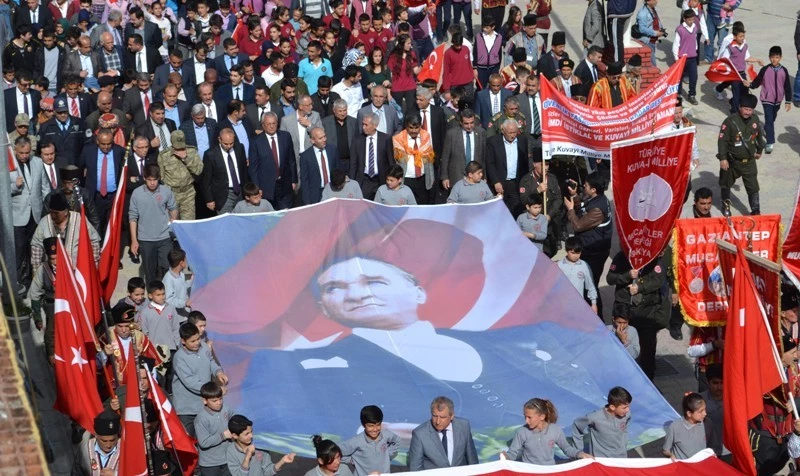 Halk Eğitim Merkezi ve Okullar tarafından hazırlanan folklor gösterisi yapıldı ve tören resmi geçit ile sona erdi.