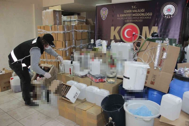 İzmir Kaçakçılık Suçlarıyla Mücadele Şube Müdürlüğü ekipleri, yılbaşı öncesinde yoğunlaşan sahte içki ve etil alkole bağlı zehirlenmeleri önlemek amacıyla, sahte/kaçak alkollü içki ve taklit etil alkol satışı yapanlara operasyon düzenledi. Tespit edilen imalathane, depo ve satış yerlerine düzenlenen 79 operasyon gerçekleştirilirken, yapılan operasyonlarda; 24 bin 327 şişe sahte içki, 6 bin 951 litre etil alkol, 4 bin 758 litre aroma, 446 litre sahte içki, 12 bin 123 adet içki yapımında kullanılan etiket, kapak, boş şişe gibi malzeme ele geçirildi.