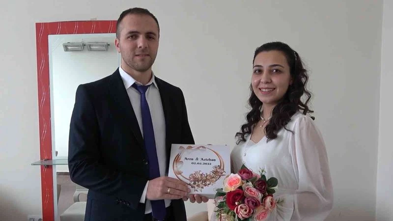 Daha kolay ve hatırlanır bir tarih olması için bugünü seçtiklerini ifade eden Azizhan Çakmak ise, "Nikah tarihine baktığımda ’02.02.2022’ tarihini gördüğümüzde bize daha anı hatıra kalır diye bugünü özellikle seçtik. Nişanlımın memleketi olduğu için burada yapıyoruz nikahımızı. 15 gün önce evlenme kararı aldık. Bu kararı aldıktan sonra nikah tarihi alma kararı aldık bize hangi tarih uygun olur diye. Tarihe baktığımızda ’02.20.2022’ tarihini gördük. Bu tarihinde bize özel, daha unutulmaz olacağını düşündüğümüz için bu tarihi seçtik. Geldik ve yerimizi de bulduk" diye konuştu.