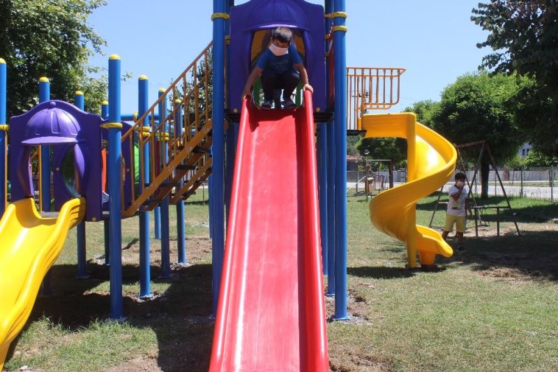 DÜZCE (İHA) – Korona virüs salgını sonrasında Düzce’de 1 liraya kolonya satılmasının ardından elde edilen gelir ile Yeni Taşköprü köyünde çocuk parkı yapıldı. Çocuk parkı hizmete alınırken, çocuklara da maske ve kolonya ücretsiz dağıtıldı.