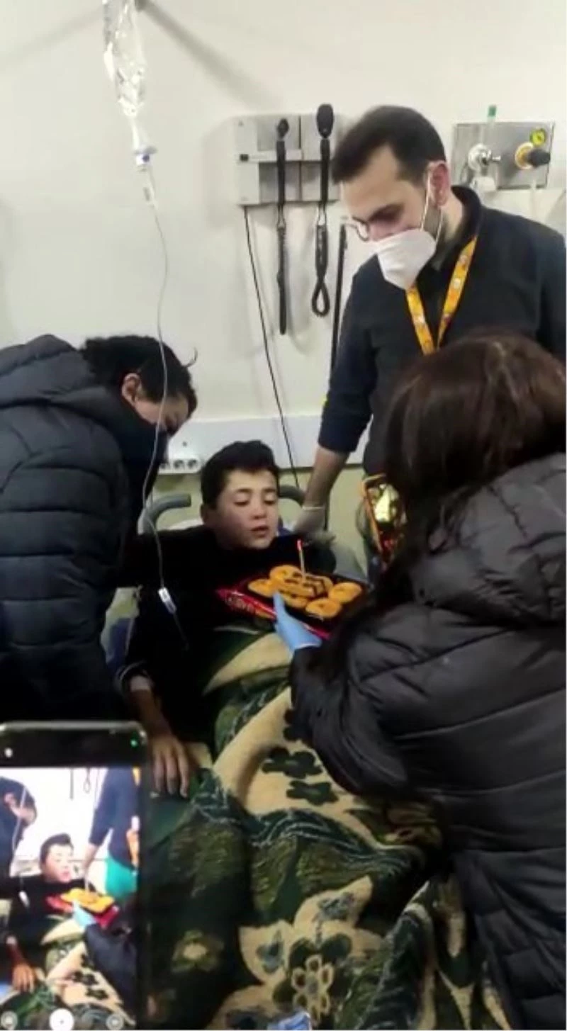 Hatay’ın merkez Antakya ilçesinde, anne-babasının cansız bedenlerinin çıktığı enkazdan 114 saat sonra sağ kurtarılan Hamza için tedavi gördüğü hastanede doğum günü kutlaması yapıldı.