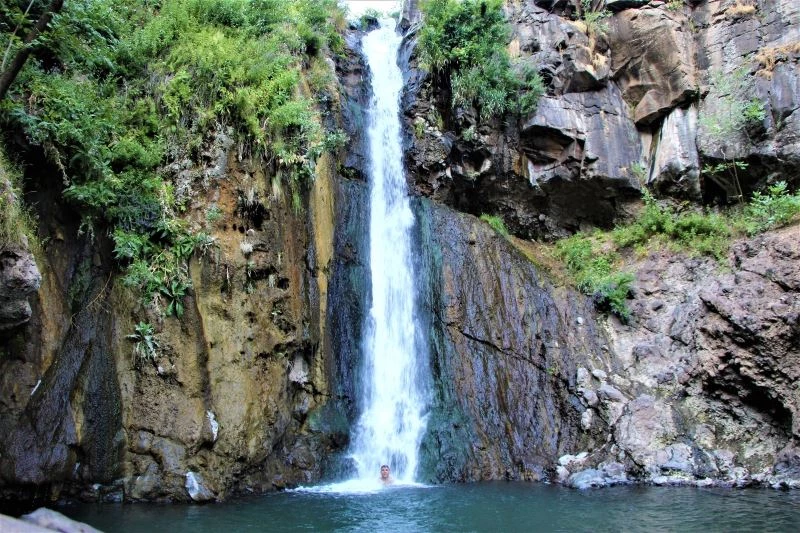 Bingöl’de bunaltıcı sıcaklar ve pandemiden kaçmak isteyen birçok vatandaş, hafta sonlarını vadi arasındaki 15 metrelik şelale altında yüzerek serinliyor.