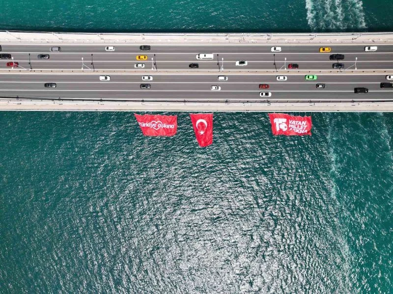 15 Temmuz hain darbe girişiminin 6’ıncı yıl dönümünde İstanbul’da birçok noktada anma programları düzenleniyor. 15 Temmuz Şehitler Köprüsü de bayraklarla donatıldı. Köprüye dev Türk bayrağı ile üzerinde ’Türkiye aşkına’, ’Vatan, millet aşkına’ yazılı dev afişler asıldı.