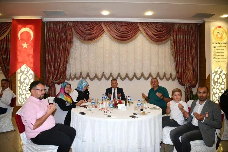 15 Temmuz 2016’da yaşanan darbe girişiminin 5’inci yıl dönümü etkinlikleri kapsamında Antalya Valisi Ersin Yazıcı’nın ev sahipliğinde şehit yakınları ile gazi ve gazi yakınları onuruna yemek verildi.