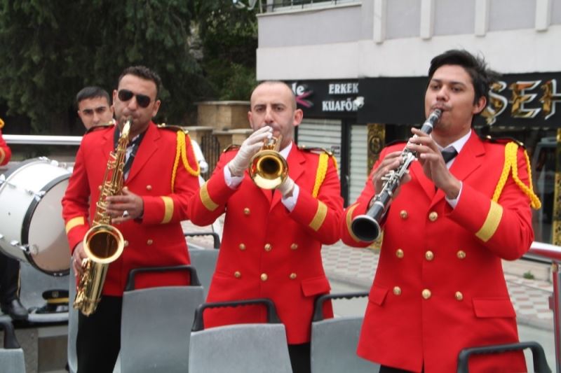 Evlerinde kalan vatandaşlar da balkonlarından bando takımını ilgiyle takip ederek, çalınan parçalara alkış tutarken, kimi vatandaşlar da telefonlarıyla kayıt yaptı.