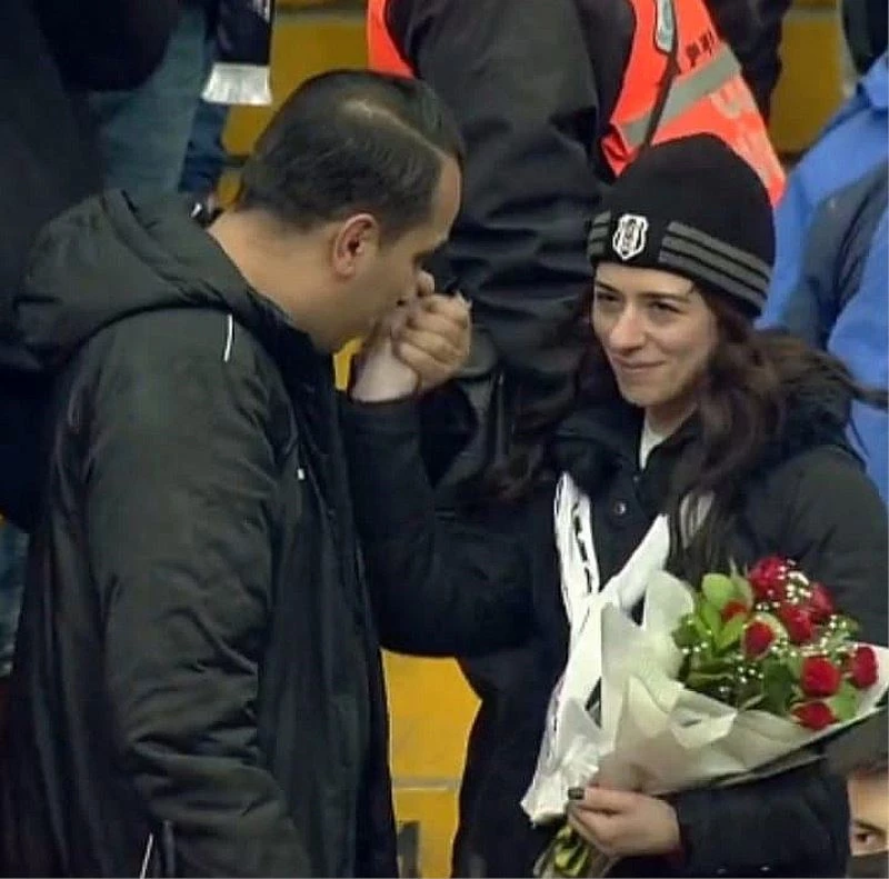 Beşiktaş’ın stat güvenliğinden sorumlu personellerinden İnanç Ramazanoğlu, Vodafone Park’ta Yağmur Esatoğlu’na evlenme teklifinde bulundu.
