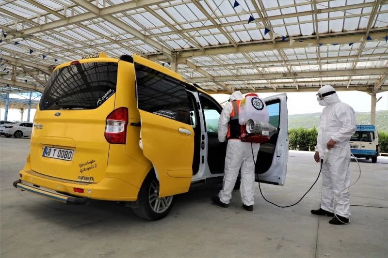 Muğla Büyükşehir Belediyesi ekipleri 13 ilçede otogarları, özel ve belediyeye ait toplu taşıma araçlarını dezenfekte etti. Toplu ulaşımların yanı sıra 13 ilçede 179 durakta bulunan 2 Bin 452 taksi ekipler tarafından dezenfekte edildi.