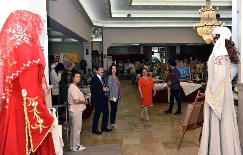 Muğla Öğretmenevindeki Halk Eğitimi Merkezi el sanatları yılsonu sergisine Muğla Valisi Orhan Tavlı ve eşi Ayşe, Menteşe Kaymakamı Mehmet Eriş, İl Milli Eğitim Müdürü Emre Çay, usta öğreticiler ve kursiyerler katıldı.