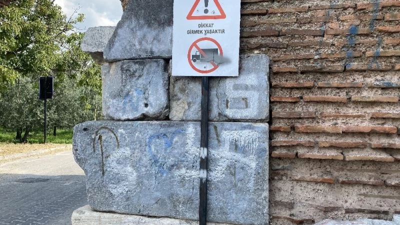 UNESCO’ya aday Bursa’nın İznik ilçesinde 2 bin yıllık kral kapısına sprey boyaları ile Nazi işareti çizildi.