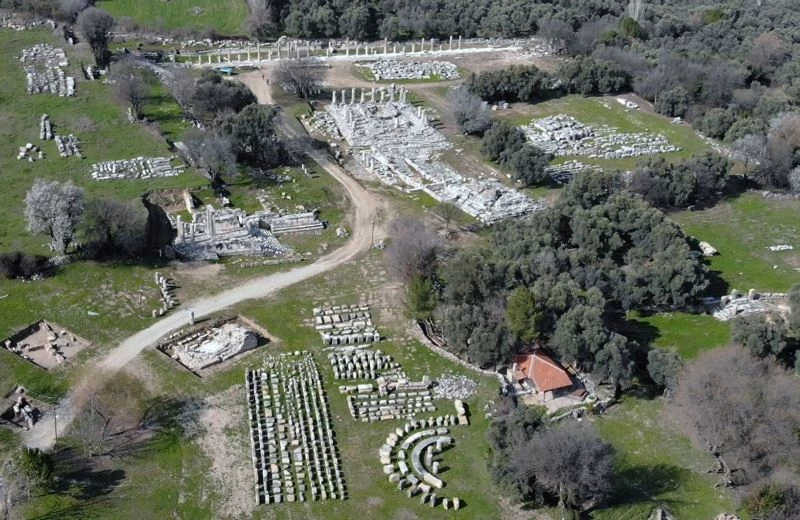 Dini merkez olması nedeniyle Pagan inanışının da merkezi sayılan Lagina antik kentinde Hekate alanında yürütülen çalışmalarda 2 bin yıllık tören kapısının sütunları tek tek yerlerine yerleştirildi.
