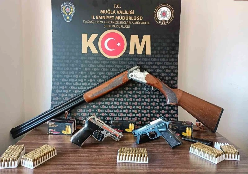 Muğla Emniyet Müdürlüğü ekipleri tarafından yapılan çalışmalar kapsamında çok sayıda mermi ve taban ile av tüfeği ele geçirildi.