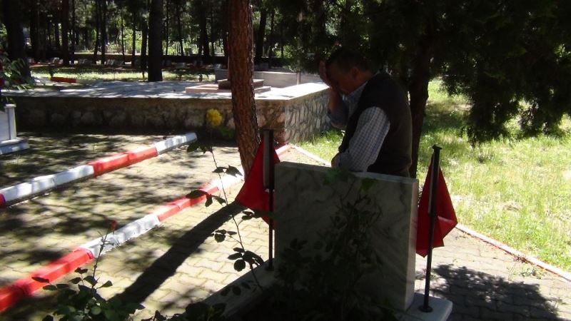 Bursa’da şehit oğlunun kabrini ziyaret eden annesi ve babası göz yaşlarını tutamadı.