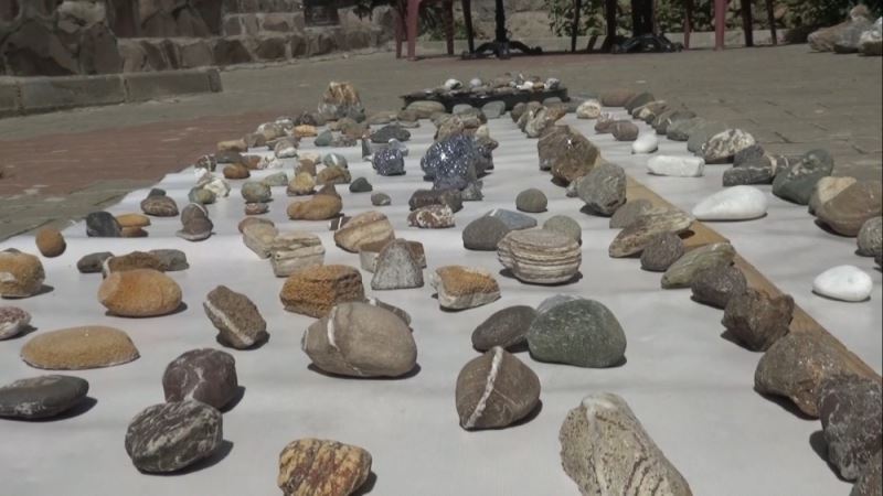 Merkeze bağlı Kale Mahallesi’nde ikamet eden Yavuz Koç; dere, ova, nehir ve denizden topladığı farklı taşları yaz mevsiminde evinin bahçesinde sergiliyor. Büyük zevk alarak yaptığı hobi işine arkadaşlarından da destek alan Koç’a, il dışından da hediye taşlar gönderiliyor. Taş koleksiyonuyla ilgili gazetecilere açıklamalarda bulunan Yavuz Koç, 20-25 yıldır taş merakının olduğunu ve derelerden, ovalardan, bayırlardan, nehirlerden, denizlerden ve gittiği illerden taş topladığını söyledi. Kendisinin ve arkadaşlarının hediye ettiği birbirinden estetik taşların olduğunu anlatan Koç, “Bu pandemi döneminde daha yoğun bir şekilde bu işe zaman ayırdım. Zamanımın yüzde 90’ı pandemiden dolayı bu işle geçiyor. Zamanımı bu şekilde geçiriyorum. Severek yaptığım bir iş. Büyük küçük fark etmeden taşları getirip sergiliyorum. Zaman zaman arkadaşlarım gelip taşları inceliyor. Kimi taşı onlara hediye ederim. Taşların hepsi farklı farklı şekillerde. İçlerinde hayvan figürü olan var, güneş gibi, yıldız gibi parlayan taşlar var. Dikkat çekici taşlar. Her bir parça taş Antalya’dan, Ankara ve değişik illerden seçilip getirilen taşlardır. Yazın böyle açık havada taşları sergiliyorum. Zaman zaman temizliklerini deterjan ile yapıp yeniden yerlerine yerleştiririm. Bu işi severek ve zevkle yapıyorum. Stresimi bu taşlarla zaman geçirerek atarım” dedi.