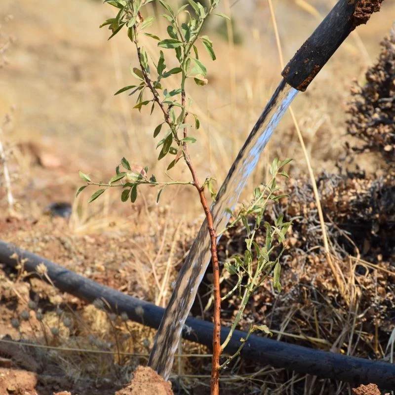 Kilis Orman İşletme Müdürlüğü tarafından 23 futbol sahası büyüklüğünde tesis edilen Badem Ormanı artan sıcaklıklar nedeniyle sulanmaya başlandı.