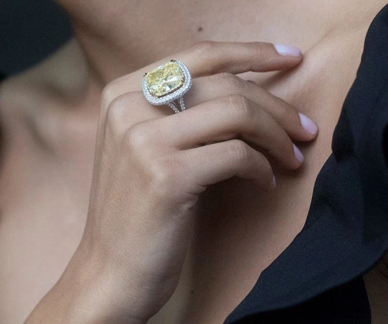 Yüzük hakkında bilgi veren ihracatçı birlik başkanı Emil Güzeliş, "Bu fuar içinde tektaş pırlanta tasarladık. Özelliği ise 18 karat Fancy pırlanta olması. Rengi ise sarı etrafında ise beyaz pırlantalar var. Beyaz pırlanta ise 3 karat toplamda ise 21 karat kullanıldı. Dünyada eşsiz diyebiliriz. Bu pırlantanın 3 karatını bulmak mümkün ancak 18 karat büyüklükte bulmak çok zor. Bu özel tasarımımızın fiyatı 5 milyon TL’ye satıyoruz” şeklinde konuştu.