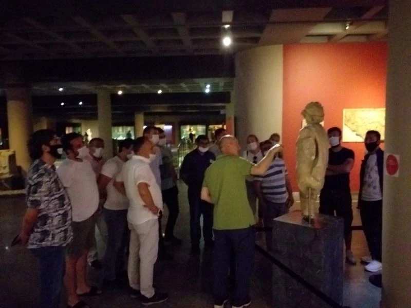Türkiye Seyahat Acenteleri Birliği (TÜRSAB) Kuşadası Bölgesel Temsil Kurulu (BTK) iç turizmi hareketlendirmek amacıyla 250 bölge acentesini Aydın’da bir araya getirdi. Aydın’a gelen acentelere korona virüs ile mücadelede alınan tedbirler, il genelinde bilgilendirme ve tanıtım çalışması yapıldı. Kuşadası’nda başlayan tanıtım etkinliğinin bugünkü durağı ise Aydın Arkeoloji Müzesi oldu. Rehber eşliğinde müzeyi gezerek sergilenen tarihi eserler hakkında detaylı bilgi alan misafirler, Aydın’ın tarihi dokusunu keşfetti. Müzeden sonra Arapapıştı Kanyonu’nda düzenlenecek tekne turu ile devam eden etkinlik Nysa Antik Kenti’nin de gezilmesi ile son bulacak. Aydın Arkeoloji Müzesi’ni gezen misafirlere, müze müdürlüğü tarafından da hatıra olması adına Aydın Arkeoloji Müzesi Sikkesi basılarak hediye edildi.