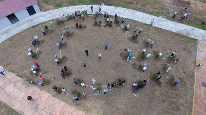OMÜ Merkez Kütüphanesinin önündeki alanda gerçekleşen fidan dikme törenine; Samsun Vali Yardımcısı Hasan Balcı, Rektör Prof. Dr. Sait Bilgiç, Genel Sekreter Doç. Dr. Menderes Kabadayı, Fakülte dekanları, yüksekokul ve meslek yüksekokulu müdürleri, akademisyenler ve idari personel katıldı. Havadan görünüşü ay-yıldızı sembolize edecek şekilde tasarlanan fidanları toprakla buluşturan Rektör Sait Bilgiç ve Vali Yardımcısı Hasan Balcı ve beraberindekiler fidanlara can suyunu verdi.
