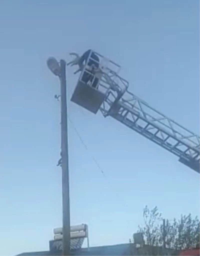 3 gün elektrik direğinde mahsur kalan kedi kurtarıldı