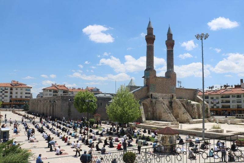 Sivas’ta normalleşme süreci kapsamında tarihi kent meydanında 3 medrese arasında binlerce kişinin katılımıyla cuma namazı kılındı.