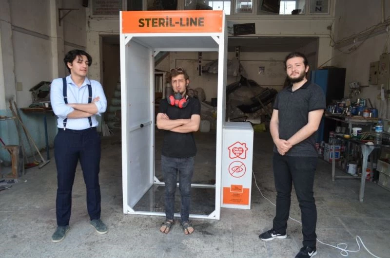 Tekirdağ’da 3 kafadar öğrenci bir olup korona virüse karşı 30 litre ile 700 kişiyi dezenfekte edebilen kabin üretti.