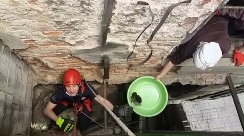 Olay, Beyoğlu Evliya Çelebi Mahallesi’nde meydana geldi. Edinilen bilgilere göre, iki bina arasından kedi sesleri duyan bir vatandaş itfaiye ekiplerine haber verdi. İhbar üzerine olay yerine gelen itfaiye ekipleri, kedi sesinin geldiği alanda dinleme yaptı. Yapılan dinlemede sesin iki bina arasındaki boşluktan geldiği anlaşıldı. Bir itfaiye eri halat yardımı ile iki bina arasına indiğinde 3 yavru kedinin buraya düştüğünü gördü. Yavru kedileri bulunduğu yerden alan itfaiye eri, komşunun uzattığı leğene koydu. Pet şişesine sıkışan bir kedi de kurtarıldı. Yavru kediler bir mahalle sakini tarafından sahiplenildi.