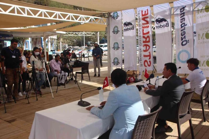 13-18 Ekim tarihlerinde İçmeler Mevkiindeki Bodrumspor Yelken Şubesi’nde düzenlenen basın toplantısına Belediye Başkanı Ahmet Aras, Bodrum Otelciler Derneği(BODER) Başkanı Ömer Faruk Dengiz ve Bodrumspor Yelken Şubesi Sorumlusu Hadi Türk katıldı.