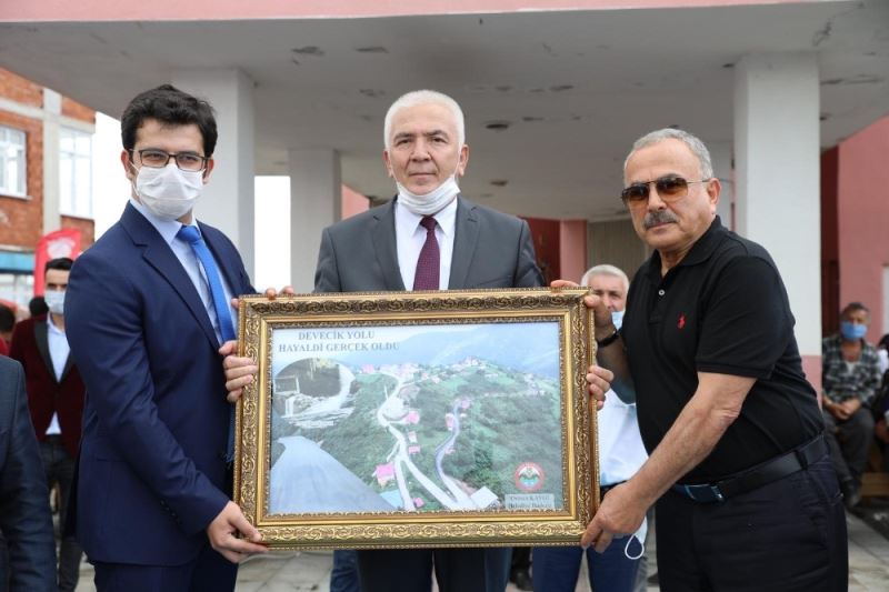 Ordu’nun İkizce ilçesinde 40 yıl önce halkın imece usulüyle kazma ve küreklerle açmaya çalıştığı, yöre halkının hasretle beklediği ve adına türküler yazdığı ‘Devecik Yolu’ Ordu Büyükşehir Belediyesi tarafından asfaltlanarak açıldı.