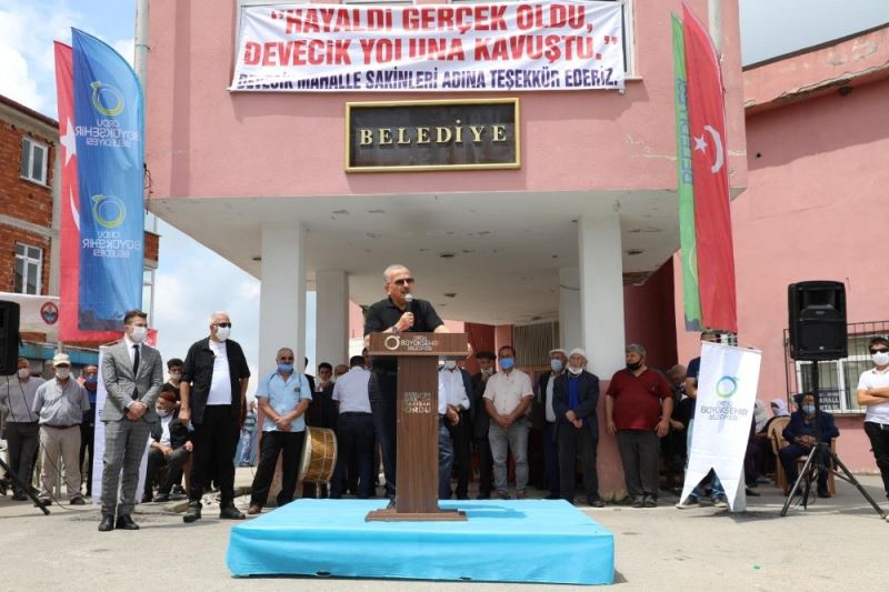 Yolun açılışı sebebiyle düzenlenen törende konuşan Ordu Büyükşehir Belediye Başkanı Dr. Mehmet Hilmi Güler, Devecik halkının yaklaşık yarım asırlık özlemini gidermiş olduklarını söyledi. Güler, “İkizce Devecik Mahallesi’nin 40 yıldır hasretle beklediği meseleyi çözüme kavuşturduk. Devecik yolunda 12 km’lik bir sıcak asfalt çalışması başlattık. Bu anlamda sözümüzde durmanın haklı gururunu yaşıyoruz. Allah bize sözümüzü tutmayı nasip etti. İkizce ilçemizde bir yandan sıcak asfalt çalışmaları devam ederken aynı zamanda büyük bir sorun haline gelen içme suyu problemi için de çalışmalar sürüyor” dedi.