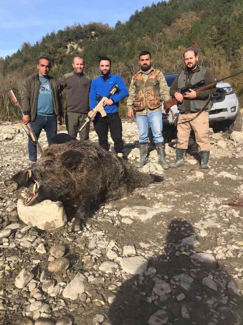 Kastamonu’nun Çatalzeytin ilçesinde avcılar, 400 kilogram ağırlığında domuz avladı.