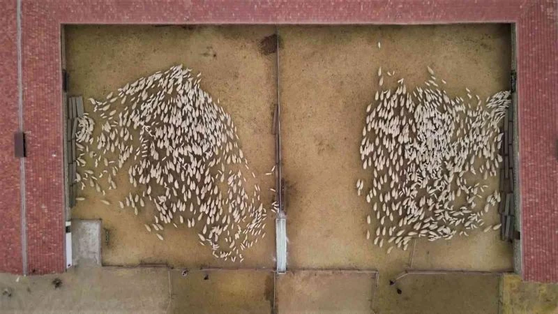 Ağıl kapılarının açılmasıyla birlikte annelerine koşan kuzular için günün en lezzetli saati başladı. Hepsi aynı gibi görünse de koku ve sesleriyle birbirlerini bulan kuzular ile annelerinin renkli anları havadan görüntülendi.