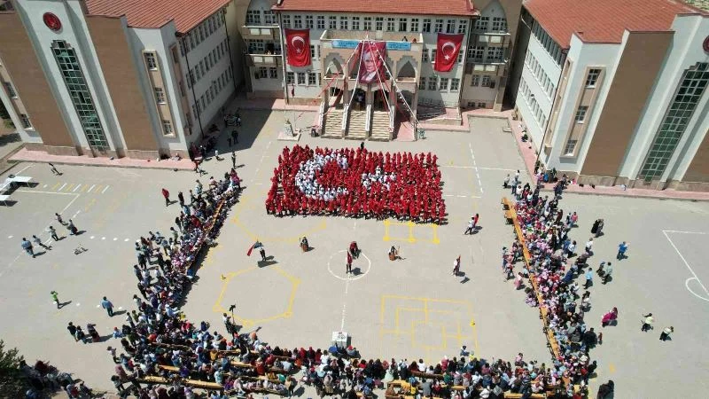 500 ortaokul öğrencisi bedenleriyle Türk bayrağı oluşturdu