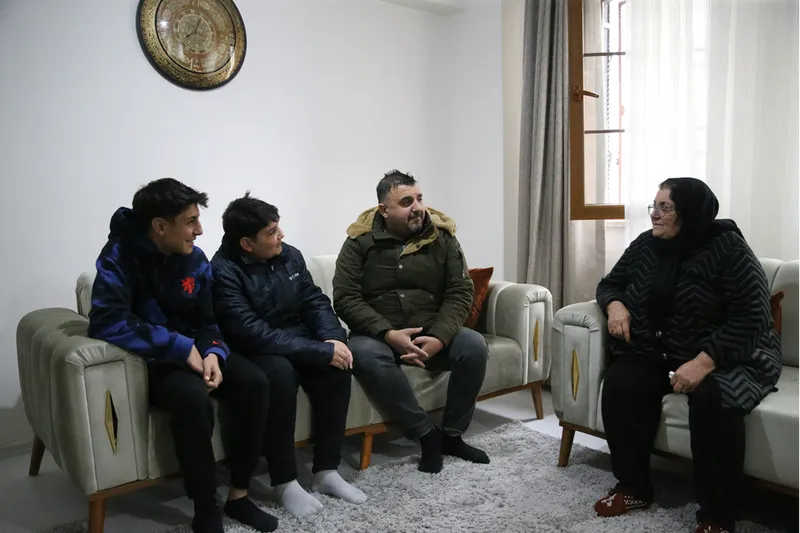 Çevre, Şehircilik ve İklim Değişikliği Bakanlığı Yapı İşleri Genel Müdürlüğünce Hüyük Mahallesi'nde inşa edilen köy tipi afet konutuna yerleşen Alban, annesinin de desteğiyle yemeklerinden çamaşırlarına, ödevlerinden temizliklerine kadar evlatlarının her şeyiyle yakından ilgileniyor.