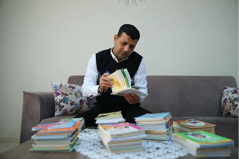 ADANA - YAKUP SAĞLAM - Adana'da 6 Şubat 2023'teki depremlerde eşi ve iki evladını kaybeden 47 yaşındaki Oğuz Soyubey, acısını afetten etkilenen illerde kütüphane kurup çocukları kitapla buluşturarak hafifletiyor.