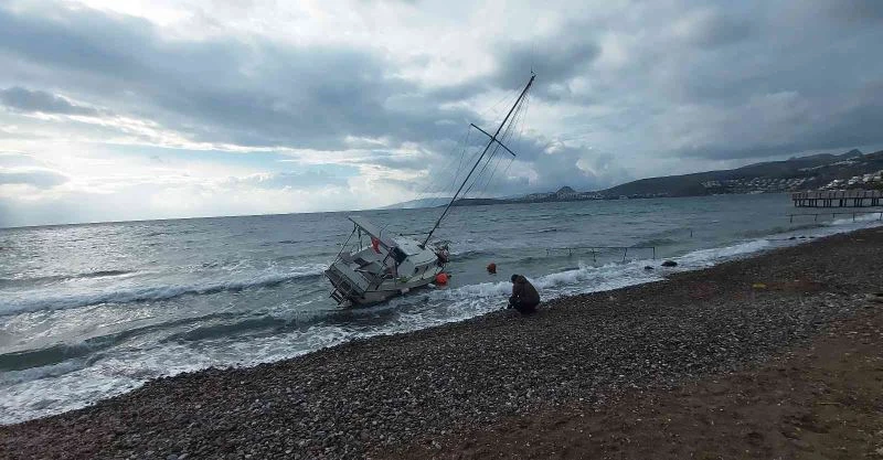 Muğla’nın Bodrum ilçesinde etkili olan sağanak yağmur ve fırtına nedeniyle hayat olumsuz yönde etkilenirken denizde sürüklenen yelkenli bir tekne ise Ortakent sahilinde karaya oturdu.
