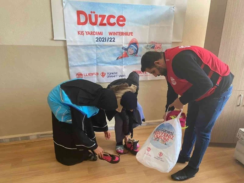 DÜZCE – Düzce Müftülüğü ve Diyanet Vakfı Düzce Şubesi ile WEFA Uluslararası İnsani Yardım Organizasyonu iş birliğinde, Düzce’deki 623 ihtiyaç sahibi çocuğa kışlık kıyafet yardımı ulaştırıldı.
