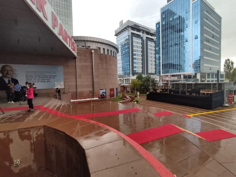 Ankara’da etkili olmaya başlayan sağanak ve fırtına, CHP Genel Başkanı Kemal Kılıçdaroğlu, İYİ Parti Genel Başkanı Meral Akşener, Saadet Partisi Genel Başkanı Temel Karamollaoğlu, Demokrat Parti Genel Başkanı Gültekin Uysal, DEVA Partisi Genel Başkanı Ali Babacan ve Gelecek Partisi Genel Başkanı Ahmet Davutoğlu’ndan oluşan 6’lı Masanın ikinci turunun ilk görüşmesi için bir araya geldiği CHP Genel Merkezi’ni de etkiledi. Genel merkezin bahçesinde toplantıyı takip eden basın mensupları için kurulan platformun çatısı, sağanak ve fırtınaya dayanamayarak uçtu. Durumdan etkilenen basın mensupları CHP Genel Merkezine sığındı.