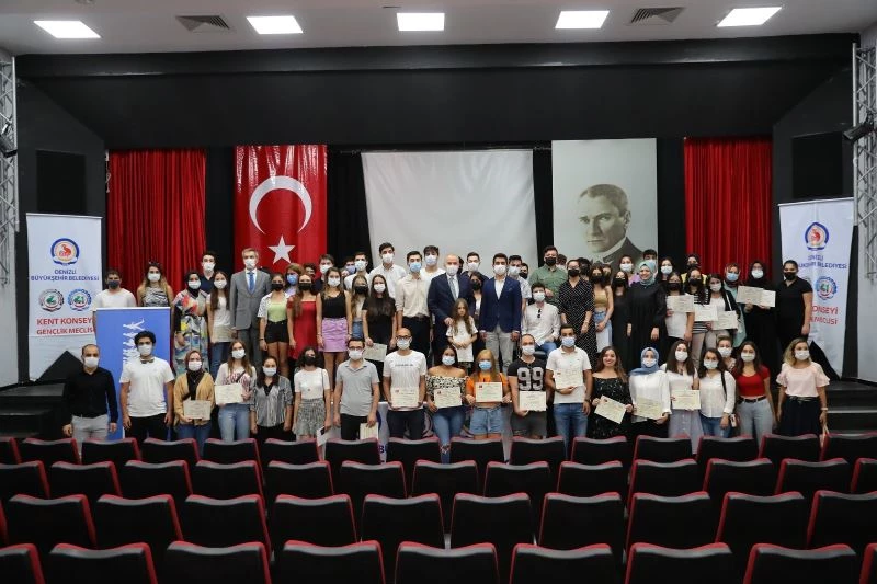 Denizli Büyükşehir Belediyesi Kent Konseyi Gençlik Meclisi’nin Küresel Gönüllülük Projelerinden biri olan ’Bir Dil Bir Kültür’ projesi kapsamında yabancı dil eğitimi alan 80 gencin sertifikasını Denizli Büyükşehir Belediye Başkanı Osman Zolan verdi.