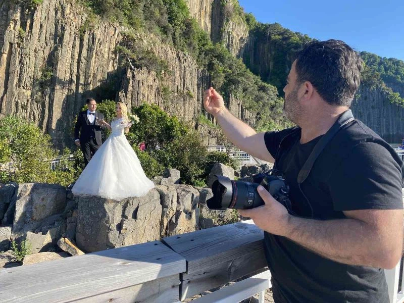 Bartın’ın Güzelcehisar sahilindeki 80 milyon yıllık lav sütunları doğaseverler ve fotoğraf tutkunlarının akınına uğramaya devam ediyor. Evlilik heyecanı yaşayan gelin ve damatlar için doğal fotoğraf platosuna dönüşen bölge ormanların içine sokulan denizi ve kum sahiliyle tatilcilerin de ilgi odağı oluyor.