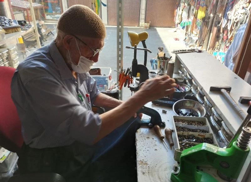Kahramanmaraş’ta 82 yaşındaki bir esnaf, 50 yıldır kol düğmesi dikerek geçimini sağlıyor.