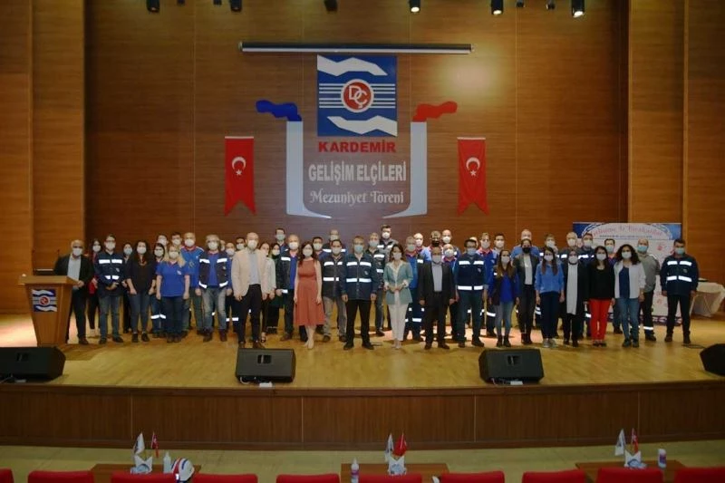 KARDEMİR’den yapılan açıklamada, “ Şirketimizde uygulanan ‘Gelişim Elçileri Programı’nda farklı ünitelerden çalışanlar, daha sürdürülebilir bir eğitim ve gelişim döngüsü oluşturma amacı ile eğitimler almakta; tecrübe ve bilgi birikiminin aktarılması ve kurumsal hafızanın güçlendirilmesi adına desteklenmektedirler. Gelişim Elçisi olarak programdan mezun olmaya hak kazanan çalışanlarımız, şirketimizin eğitim programları çerçevesinde mevcut çalışanlarımıza ve Kardemir Ailesi’ne yeni katılacak kişilere iç eğitmen sıfatı ile eğitimler verecektir. 39 çalışanımızın başarı belgesi ile şirket yöneticilerimiz tarafından ödüllendirildiği mezuniyet programında, Gelişim Elçilerimize rozet ve eğitici setleri de verildi. Yetişkin eğitiminin nasıl yapılması gerektiği başka olmak üzere birçok alt başlıkta eğitime tabi olan çalışanlarımız, şirketimizin gelecek planlarındaki büyümesine ve kurumsallaşmasına önemli ölçüde katkı sağlayacaklardır” ifadelerine yer verildi.