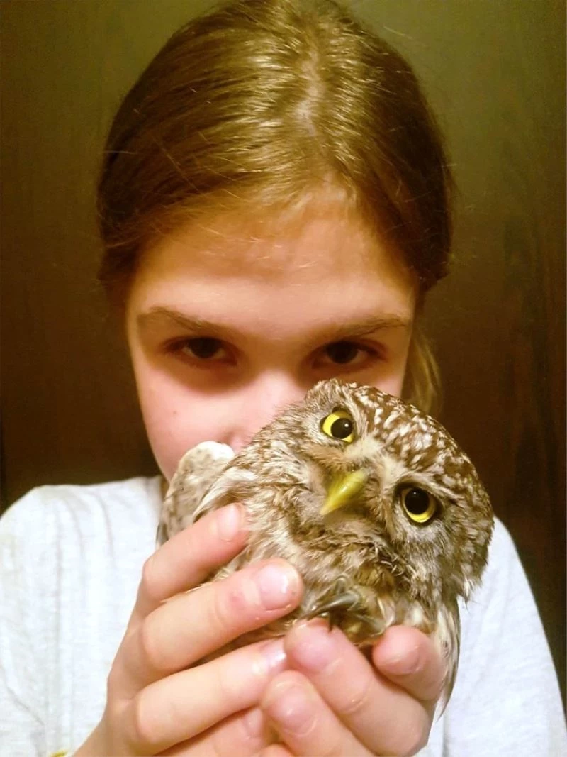 Yalıkavak Mahallesi’nde yaşayan, evinebenbakarım.com’un sahibi Orkun Erol ve 9 yaşındaki kızı Defne, Küçükbük Mahallesi’nde bir yakını tarafından bulunan yaralı baykuşun bakımını üstlendi. Hayvanı tedavi için veteriner hekime götüren Erol, evin misafir yatak odasını baykuşa ayırdı. Erol, 9 yaşındaki kızı Defne ile birlikte burada hayvana bakıp tedavisini yapmaya başladı. Defne her gün kafasından yaralanan baykuşun pansumanını yapıyor. Baykuşu gündüzleri balkona çıkaran Defne, kuşu elleriyle beslemeyi de ihmal etmiyor. Yırtıcı bir hayvan olan baykuş ise Defne’yi gördüğünde sesini çıkarmıyor, saldırmıyor, elinden yemek yiyor.