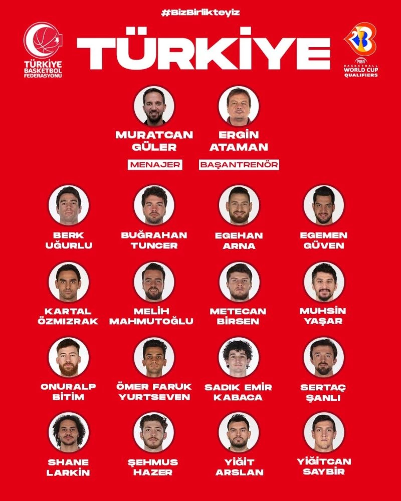 FIBA 2023 Dünya Kupası Elemeleri B Grubu’nda A Milli Erkek Basketbol Takımı’nın deplasmanda Büyük Britanya ile karşılaşacağı müsabakanın 16 kişilik kadrosu belirlendi. Ay-yıldızlıların 3 Temmuz Pazar günü TSİ 18.00’de Büyük Britanya ile oynayacağı mücadelenin kadrosu şu isimlerden oluştu: