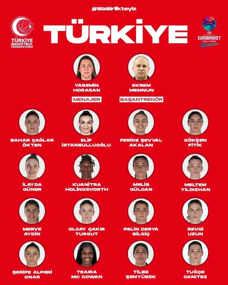 A Milli Kadın Basketbol Takımı’nın teknik, idari ve sporcu kadrosu şu şekilde: