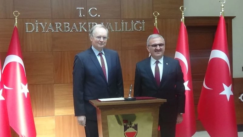 Çeşitli temaslarda bulunmak üzere Diyarbakır’a gelen Avrupa Birliği (AB) Türkiye Delegasyonu Başkanı Christian Berger ve beraberindeki heyet, Diyarbakır Valisi ve Büyükşehir Belediye Başkan Vekili Münir Karaloğlu’nu ziyaret etti.