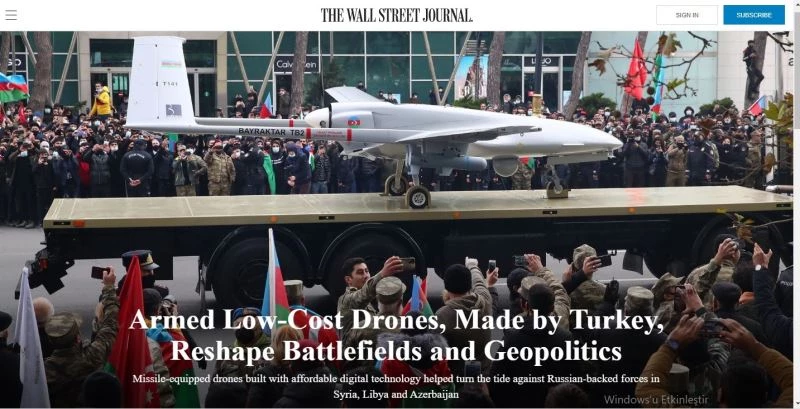 ABD’nin önde gelen gazetelerinden Wall Street Journal’da yayımlanan haberde, Türkiye’de üretilen düşük maliyetli silahlı insansız hava araçlarının (SİHA) çatışma bölgelerini ve jeopolitiği yeniden şekillendirdiği belirtildi.