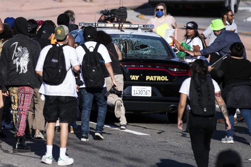 Kaliforniya eyaletinin en büyük kenti Los Angeles’taki gösteride ise bir araya gelen yüzlerce kişi, Los Angeles Belediyesi ve Polis Merkezine yürüdü. Yürüyüş sırasında Los Angeles’ın ana yollarından biri olan 101 numaralı otobanını trafiğe kapatan göstericiler, otoyolda bulunan polis aracına saldırdı. Polis, araçla bölgeden çıkmaya çalışırken aracın üzerinden düşen 1 gösterici yaralanarak hastaneye kaldırıldı. Çevrede bulunan bina ve polis merkezinin duvarlarına sprey boya ile yazı yazdı. Los Angeles polisi, şehir genelinde trafik konusunda uyarı yaparken tansiyonun daha fazla yükselmemesi için kalabalığı uzaktan yönlendirmeye çalıştı.