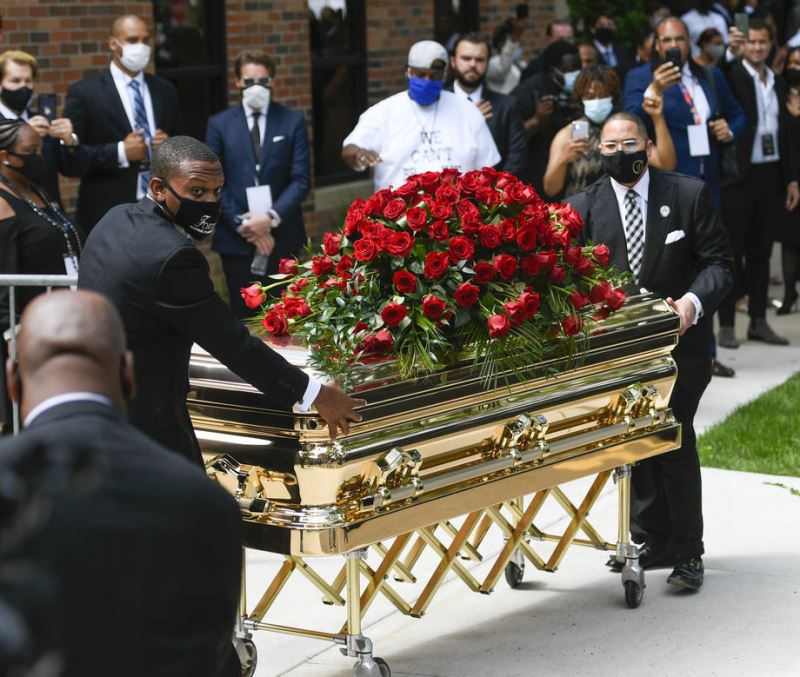 Minneapolis kentindeki North Central Üniversitesi kampüsünde düzenlenen cenaze töreninde tabutun üzerindeki "Şimdi nefes alabilirim" yazısı dikkat çekti.