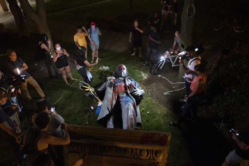 Bir grup gösterici başkent Washington DC’deki Amerikan Konfedere Devletleri Generali Albert Pike’ın heykelini yıkıp ateşe verdi. Heykelin yıkılması sırasında polis göstericilere müdahale etmedi.