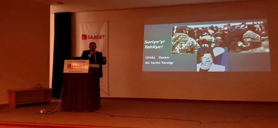 Suriye operasyonlarının terör sıkıntısını def etmek için yapılması gerektiğini ancak, Suriye harekatları üzerinden siyasi rant elde etme çabasını eleştiren Çalışkan, “Keşke bugünlere gelinmeseydi de hem Erbakan hocanın 2003 yılında yaptığı konuşma hem Saadet Partisi heyetinin savaşın başladığı ilk yıllarda Suriye ziyaretindeki ikazları dikkate alınsaydı” dedi.