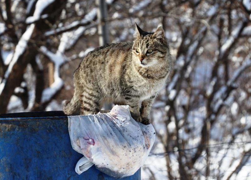 Van’ın Gevaş ilçesinde aç kalan kedilerin çöp konteynerlerinde yiyecek araması objektiflere yansıdı.
